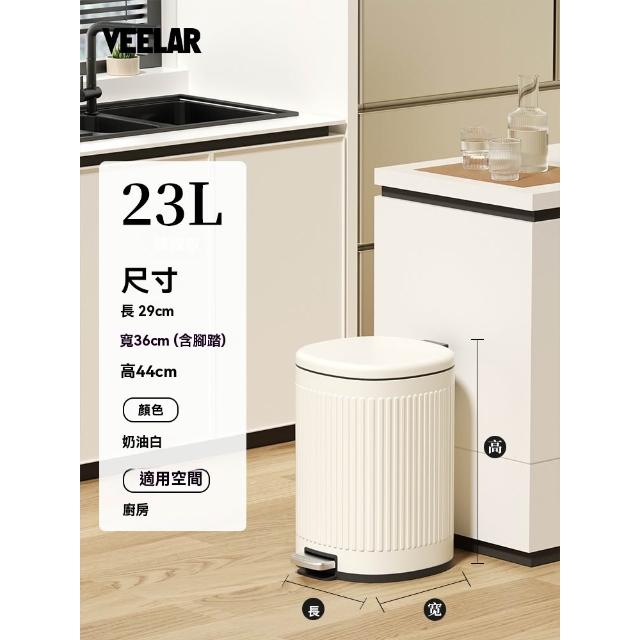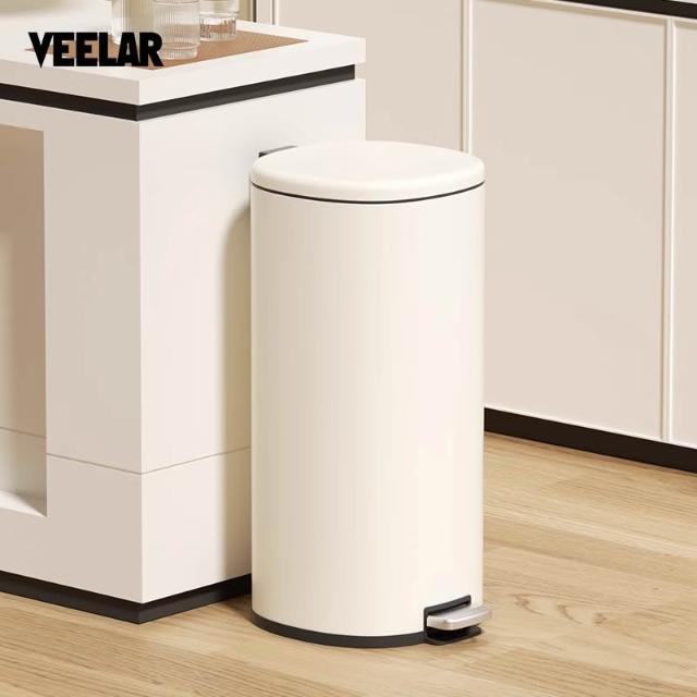 譽添家居VEELAR不鏽鋼窄身垃圾桶23L 腳踏式帶蓋 側投口設計+垃圾袋隱藏|廚房衛浴窄縫適用|密封圓蓋防蟑抗鏽