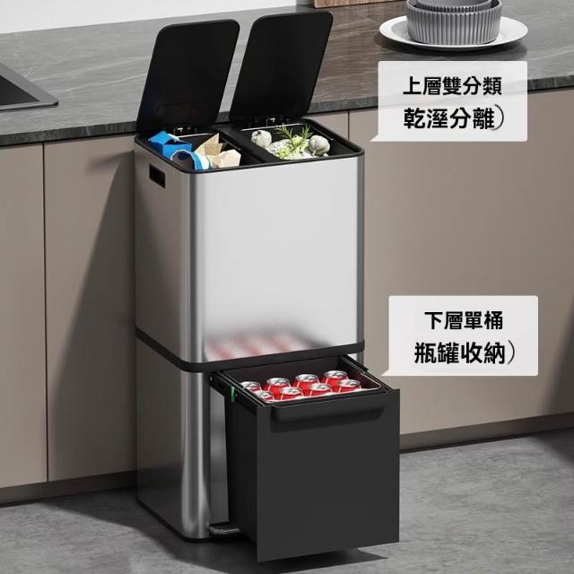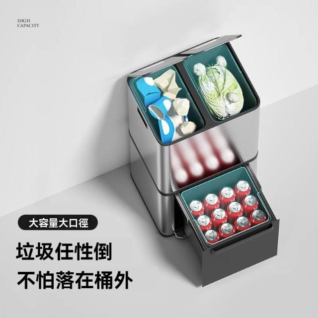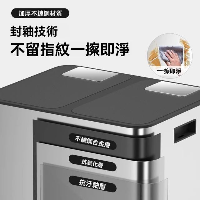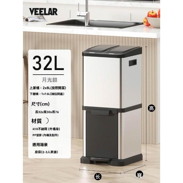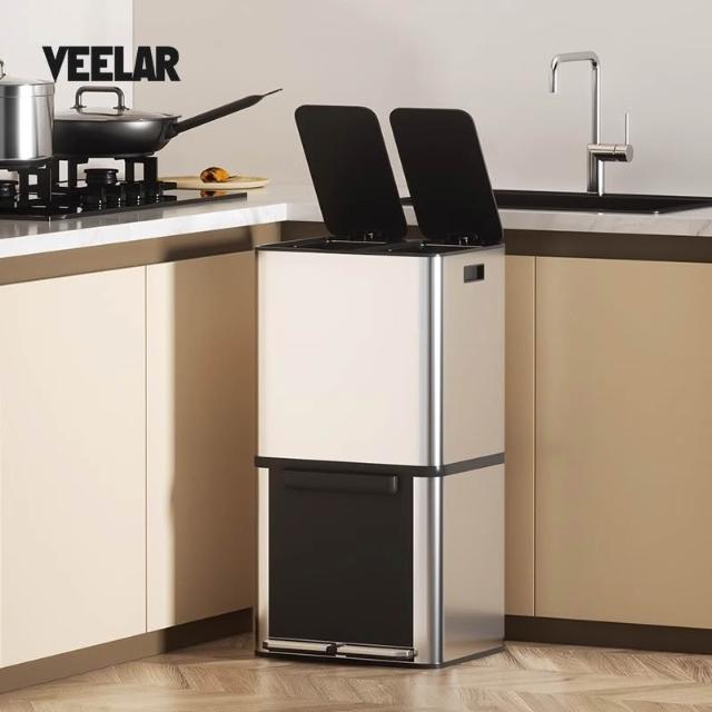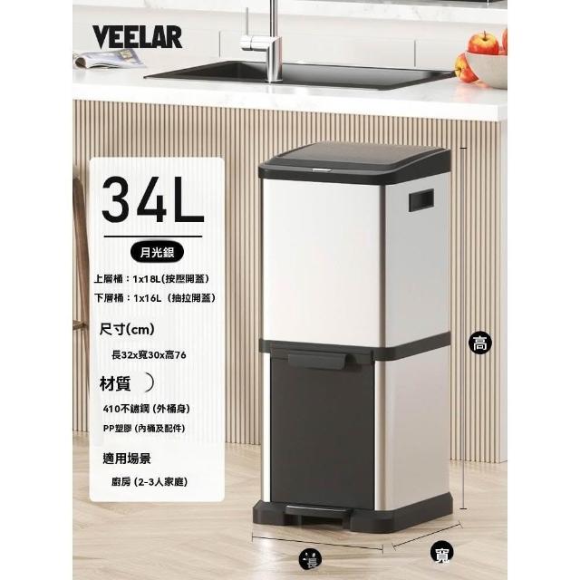 譽添家居VEELAR不鏽鋼廚房分類垃圾桶|76cm免彎腰+32/34L雙層設計|410防鏽鋼蓋|窄縫靜音款