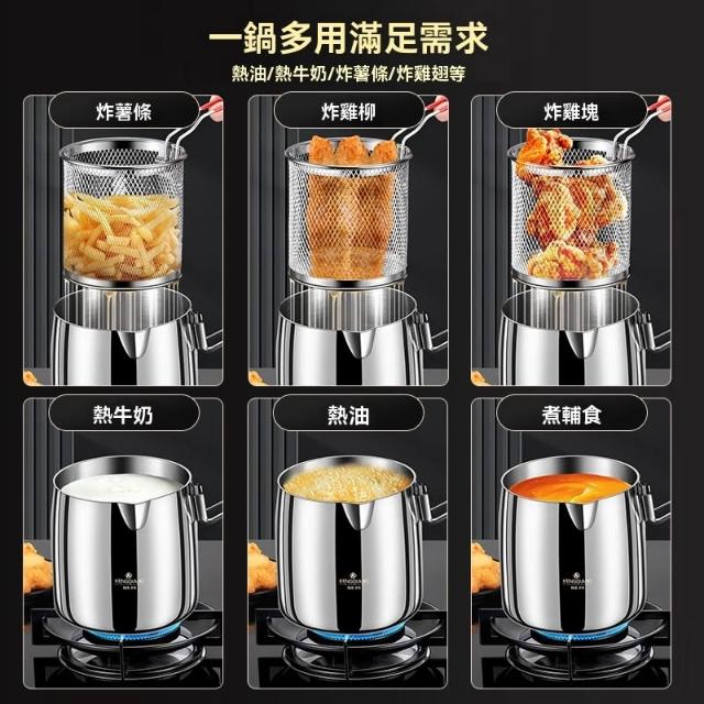 譽添家居鏗鏘 316不鏽鋼油炸鍋 家用防濺油炸壺 帶濾網省油 加深 迷妳小炸鍋