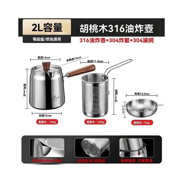 譽添家居鏗鏘 316不鏽鋼 油炸鍋 油炸壺 家用省油加高加深 帶濾網