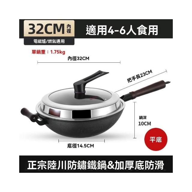 譽添家居鐵鍋 炒鍋 家用老式傳統生鐵鍋 加厚平底鑄鐵鍋 燃氣電磁爐炒菜鍋