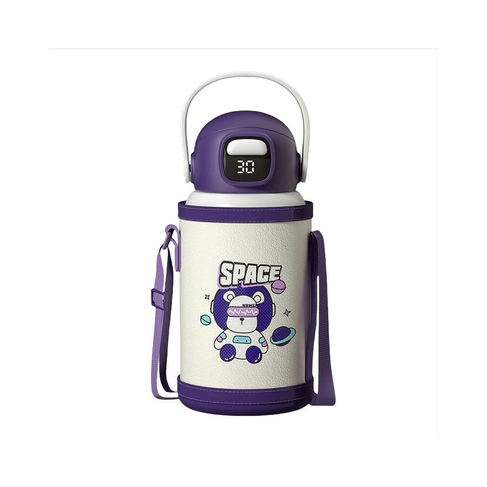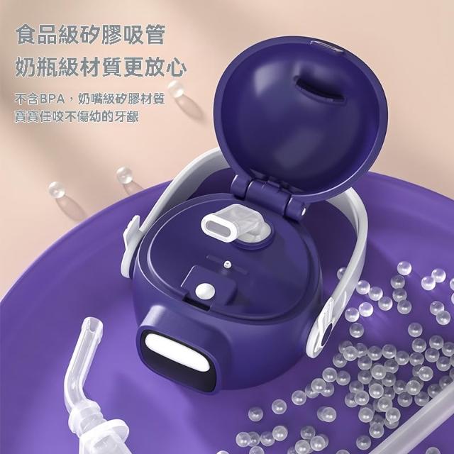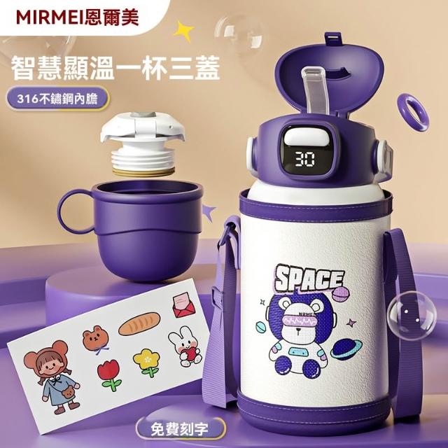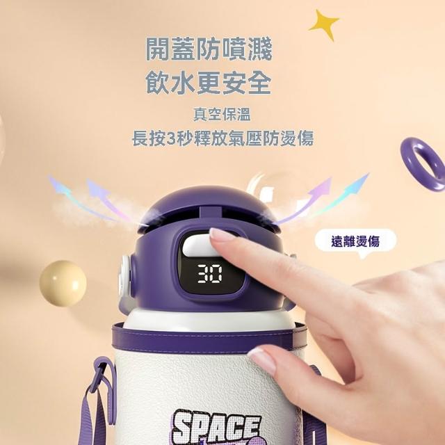 譽添家居太空熊兒童保溫杯 316不鏽鋼內膽 智能顯溫 一體三蓋便攜水杯 卡通便攜帶吸管學生水壺 500ML