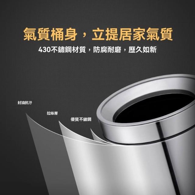 譽添家居430不鏽鋼垃圾桶 防滑底座垃圾桶 敞口垃圾桶 無蓋壓圈設計 防指紋抗油污 20L/25L/30L多容量