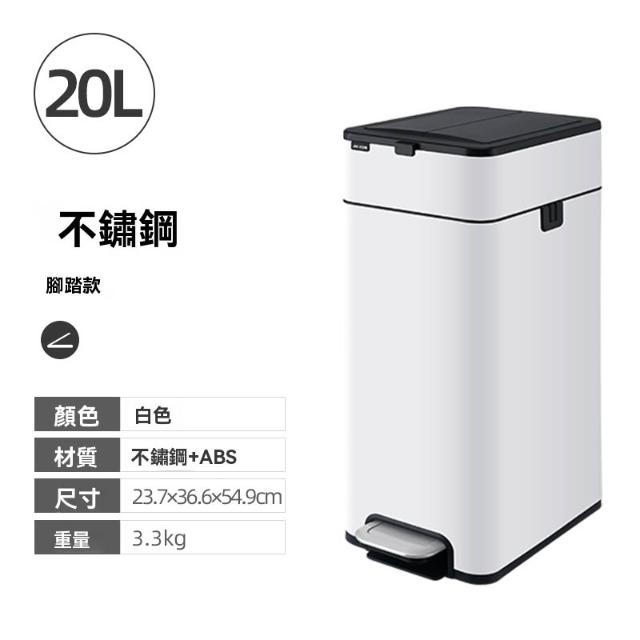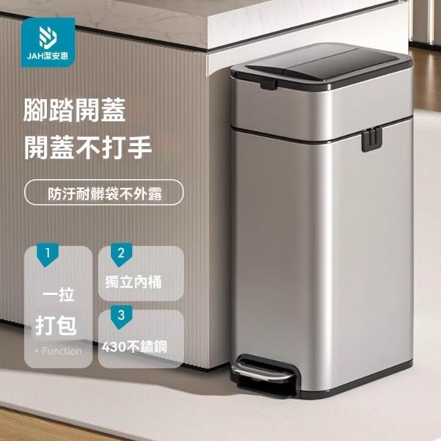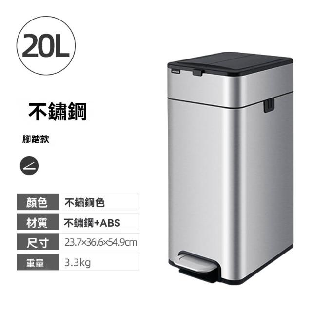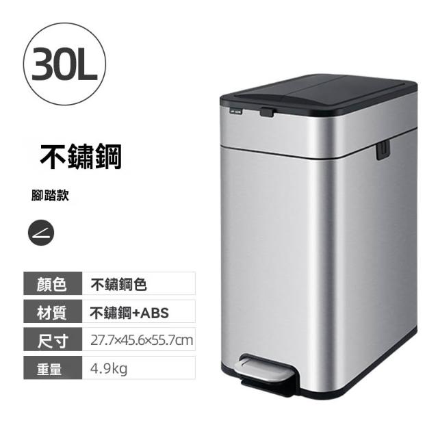 譽添家居不鏽鋼腳踏垃圾桶 雙開式垃圾桶 腳踏式垃圾桶 側滑式開蓋設計 內外雙桶結構 20L/30L/40L可選