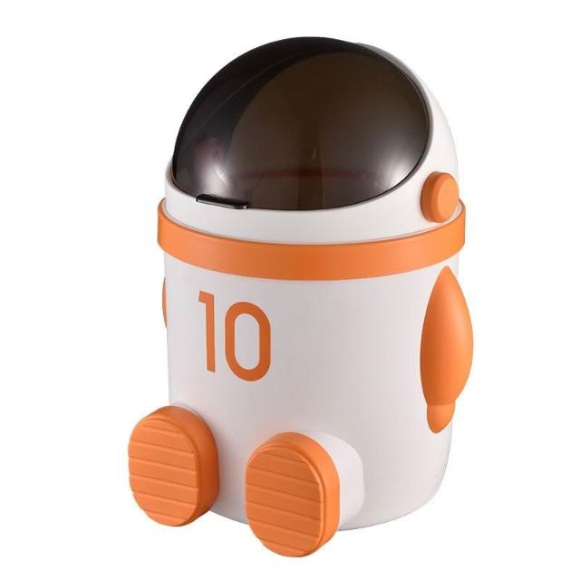 譽添家居ABEPC-太空人垃圾桶 創意太空人桶 密封防臭垃圾桶 翻蓋式設計 防滑耐磨底座 8L 夏日橙/奶咖棕可選