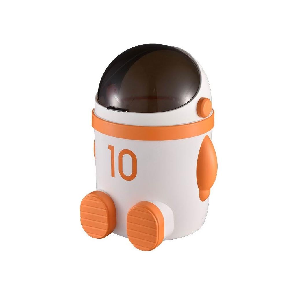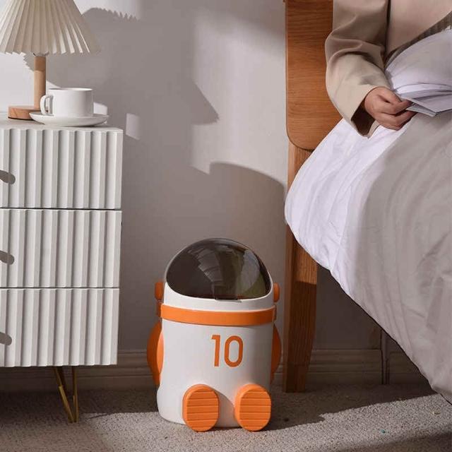 譽添家居ABEPC-太空人垃圾桶 創意太空人桶 密封防臭垃圾桶 翻蓋式設計 防滑耐磨底座 8L 夏日橙/奶咖棕可選