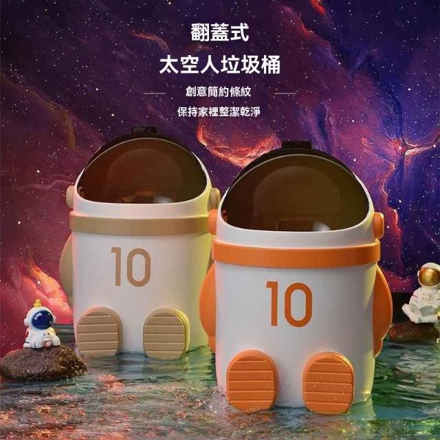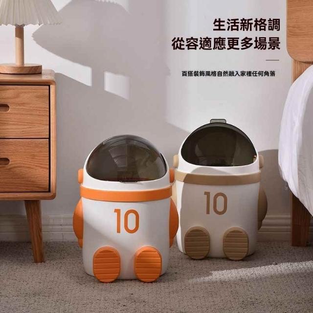 譽添家居ABEPC-太空人垃圾桶 創意太空人桶 密封防臭垃圾桶 翻蓋式設計 防滑耐磨底座 8L 夏日橙/奶咖棕可選