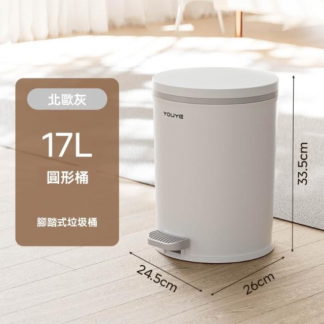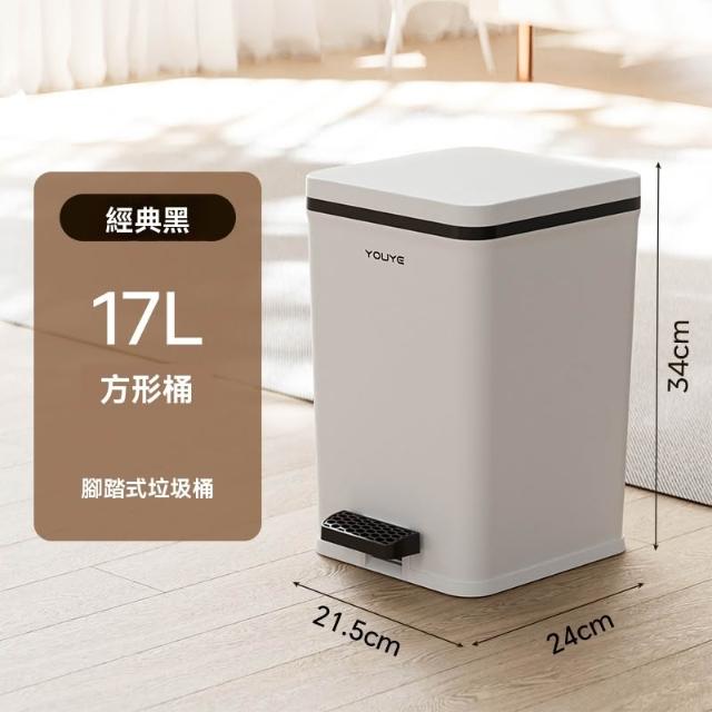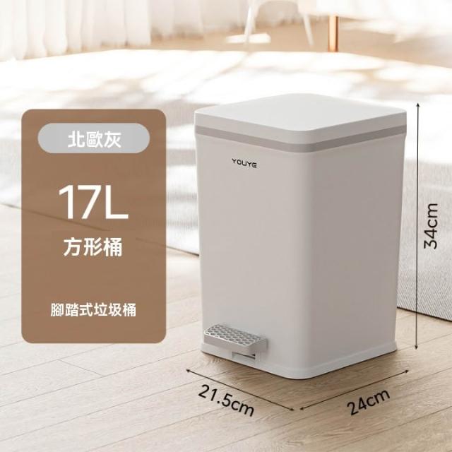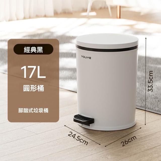 譽添家居腳踏式垃圾桶 方形/圓形垃圾桶 簡約垃圾桶 內外雙桶 17L 白底+黑/灰可選