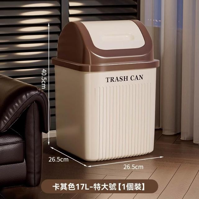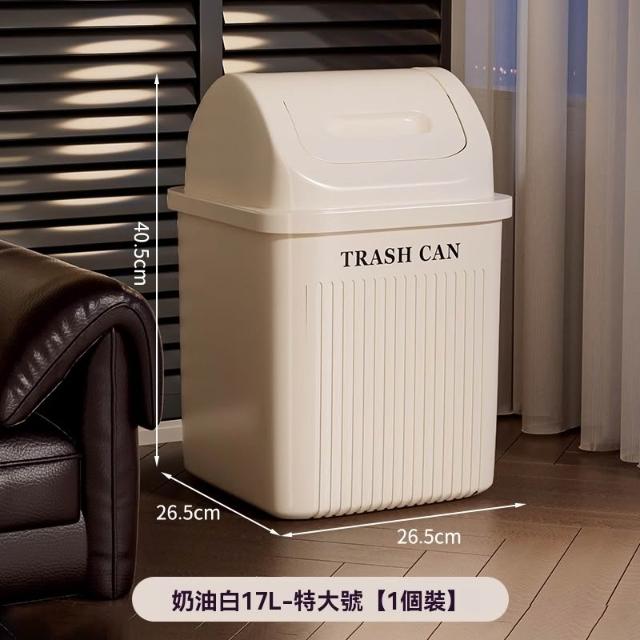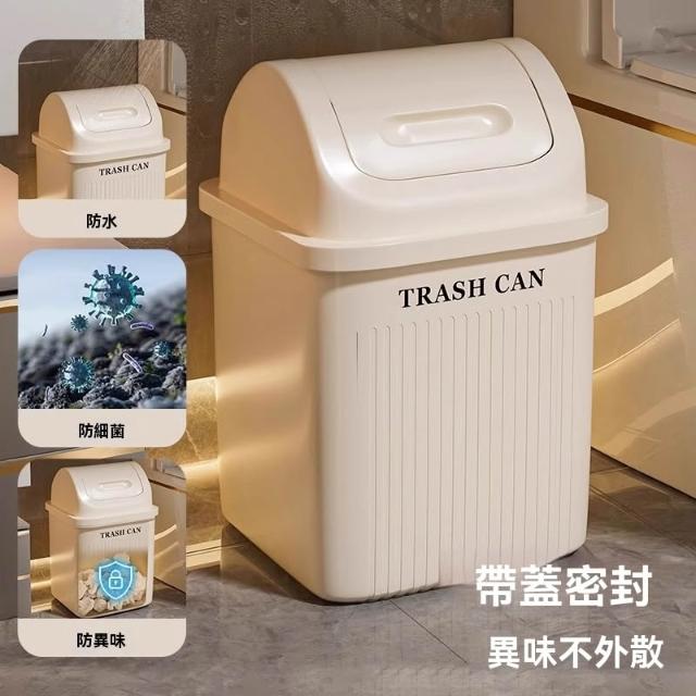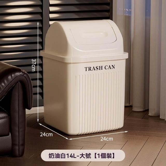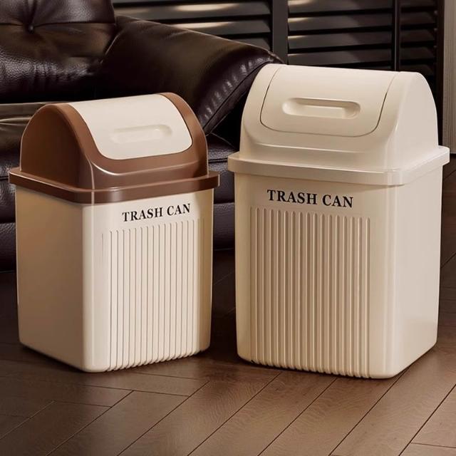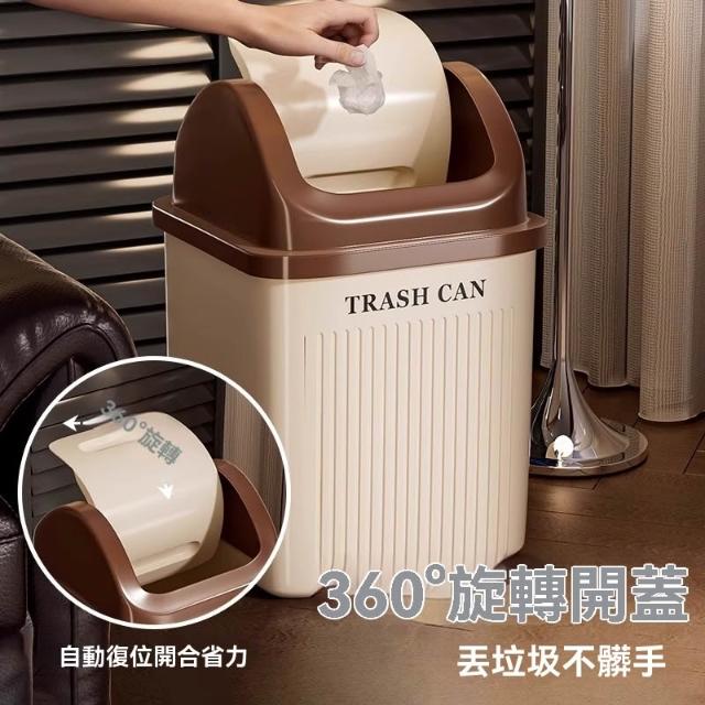 譽添家居搖蓋式垃圾桶 360°旋轉垃圾桶 自動復位設計 雙向翻轉蓋 14L/17L雙容量 奶油白/卡其色