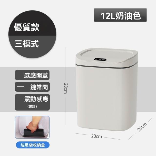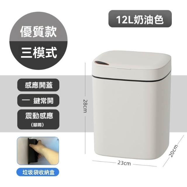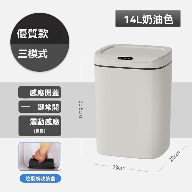 譽添家居12L/14L/16L智能感應垃圾桶 多功能感應桶 三模式操作(感應/腳踢/常開)360°全方位感應 奶白色