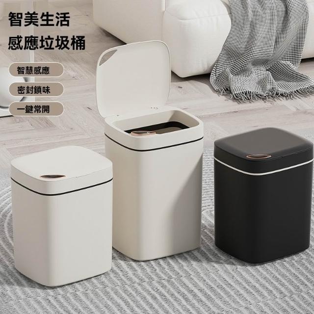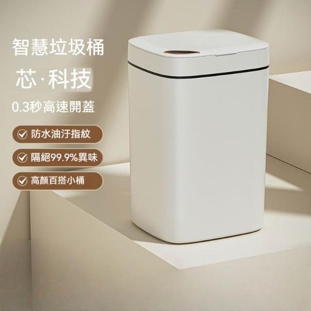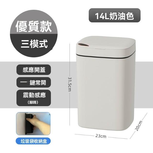 譽添家居12L/14L/16L智能感應垃圾桶 多功能感應桶 三模式操作(感應/腳踢/常開)360°全方位感應 奶白色