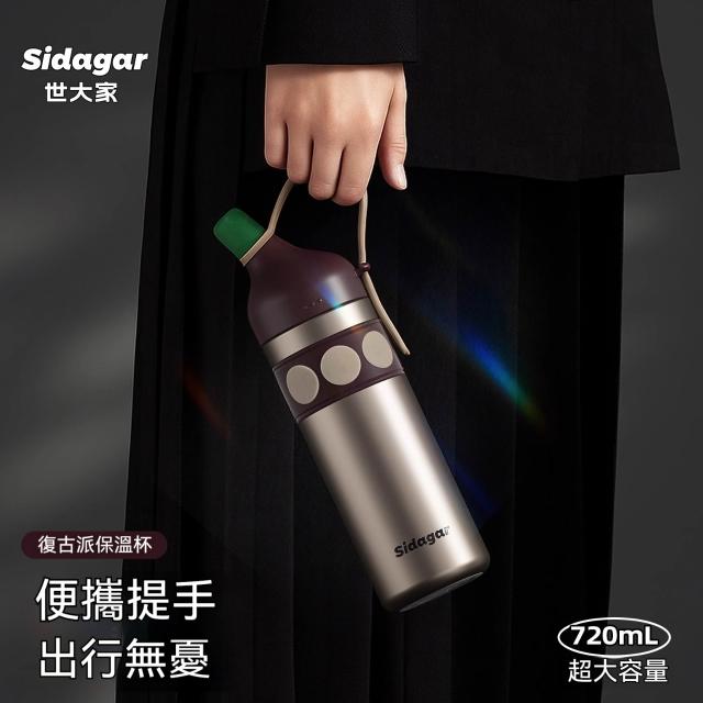 譽添家居世大家_復古保溫杯 吸管保溫杯 便攜運動保溫壺 720ML隨行杯 不鏽鋼陶瓷內膽 可調節提手