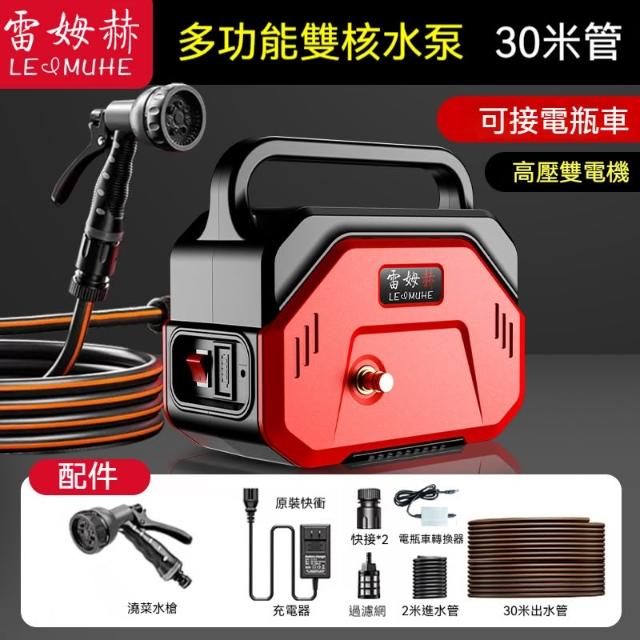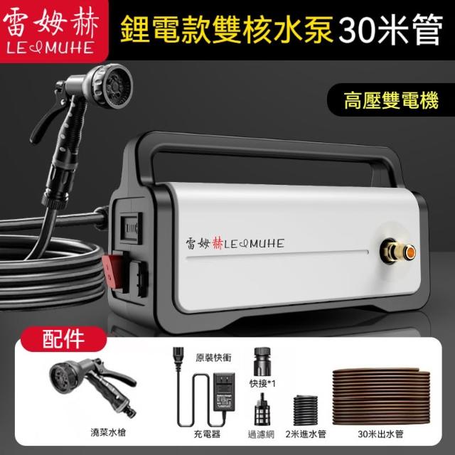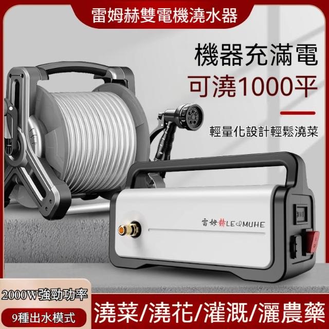 雷姆赫_雙電機澆水器 澆水機 充電式抽水泵 農用菜地灌溉自動戶外澆地機 30米管 9種出水