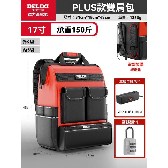 ​​德力西_電氣雙肩工具背包 工具背包 收納包 加厚防水牛津布 150斤高承重 五層加厚 17寸大容量