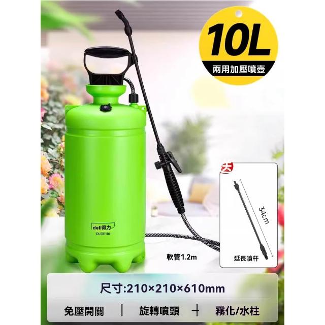得力_背負式加壓噴霧器 園藝噴霧器 氣壓式噴水壺噴灑 10L 細密霧化+強勁水柱 雙模式噴灑