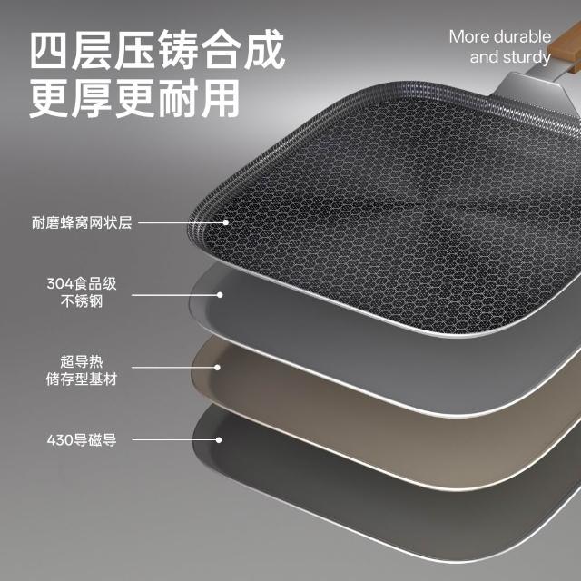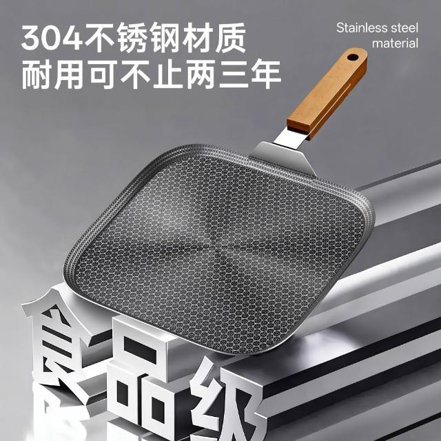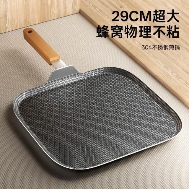 不鏽鋼煎鍋 304無塗層 家用方形平底鍋 牛排煎盤 不粘鍋煎餅鍋
