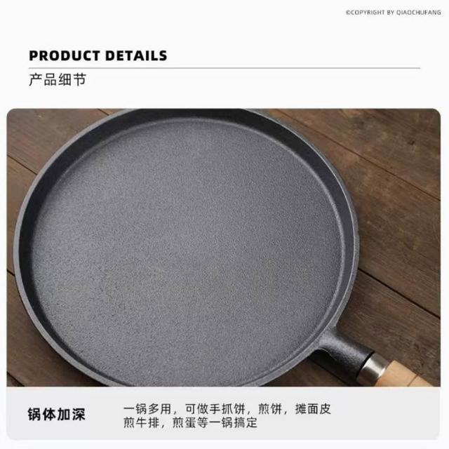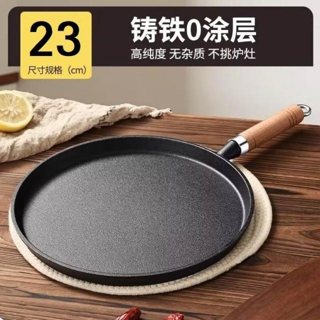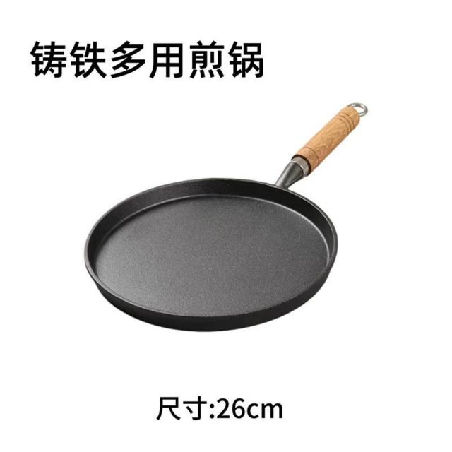日式鑄鐵平底鍋 家用煎牛排煎鍋 烙餅平底鍋 無塗層鐵盤 不粘生鐵鍋 電磁爐燃氣竈煎盤