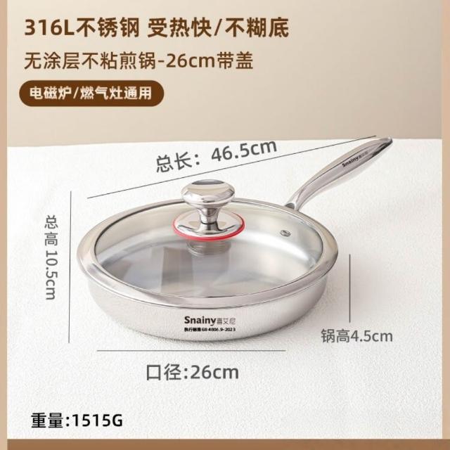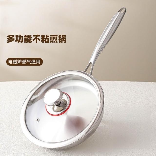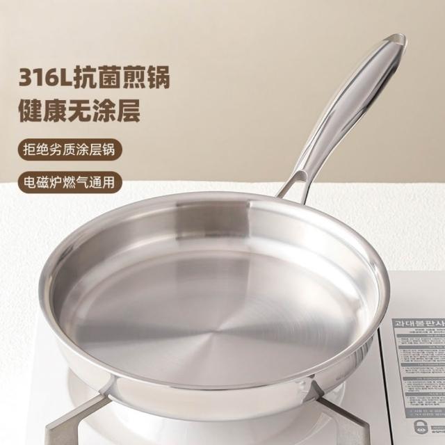 無塗層平底鍋 316不鏽鋼平底鍋 家用平底鍋 不粘鍋 煎蛋平底鍋 牛排煎鍋 燃氣灶平底鍋 電磁爐平底鍋