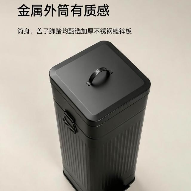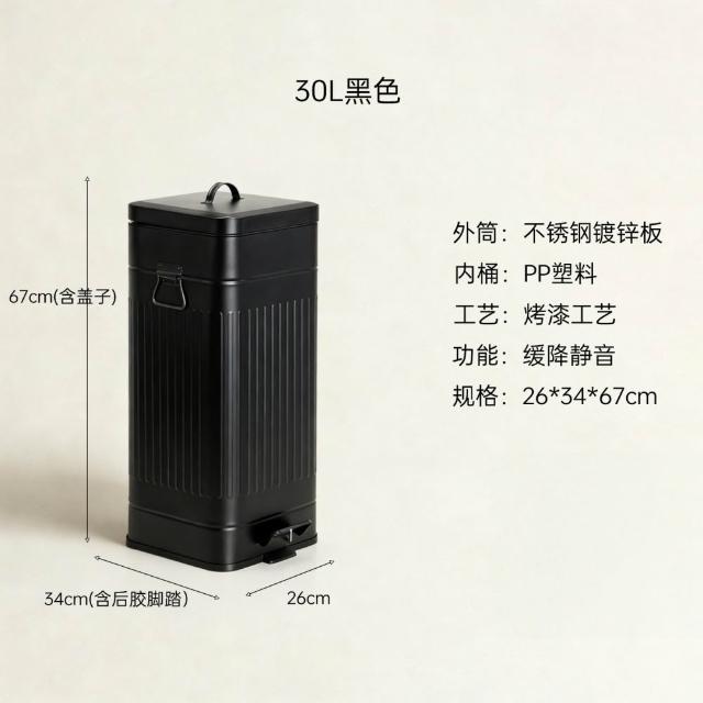 黑色垃圾桶 復古垃圾桶 家用垃圾桶 大容量垃圾桶 帶蓋垃圾桶 客廳垃圾桶 輕奢垃圾桶 30L垃圾桶 腳踩垃圾桶