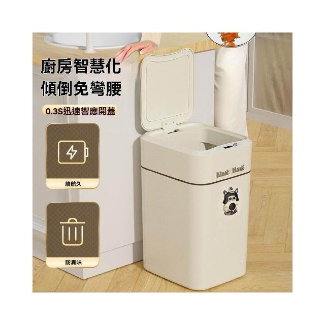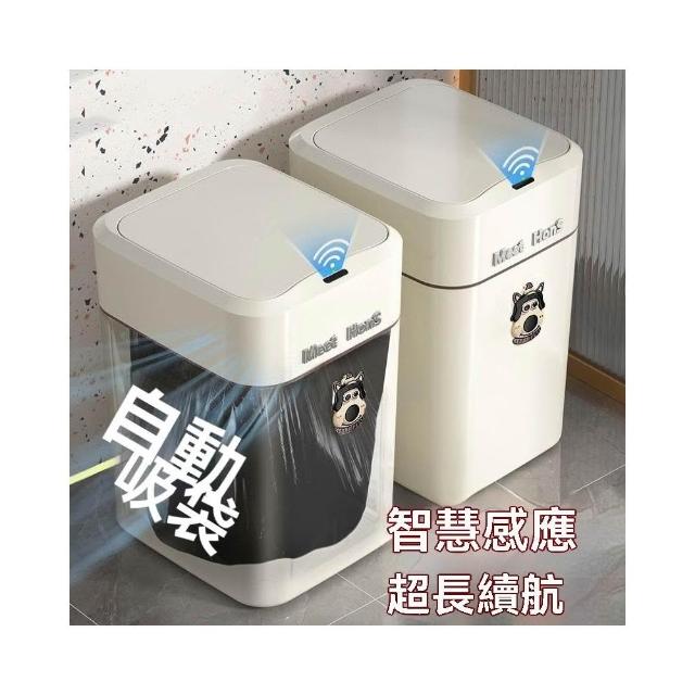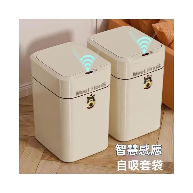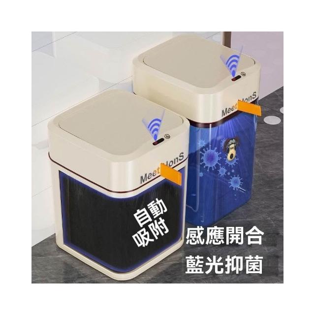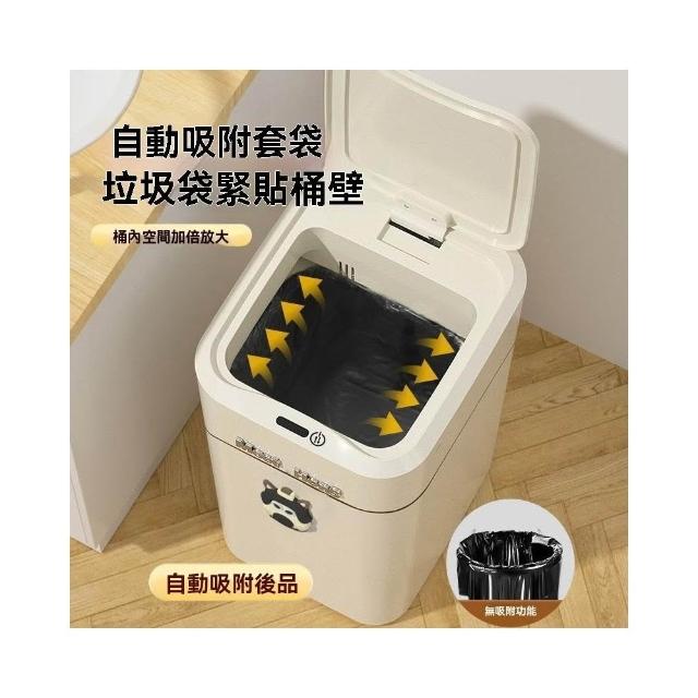 譽添家居16L智能感應垃圾桶 帶蓋垃圾桶 藍光抑菌 自動吸附套袋 防異味密封 奶白色