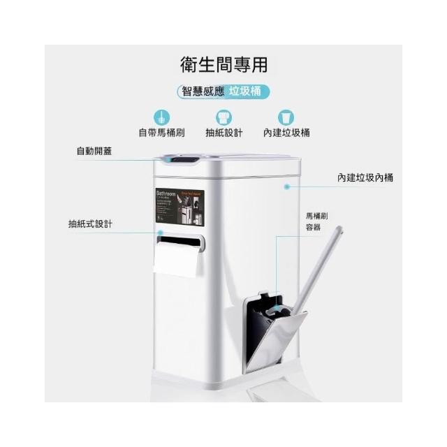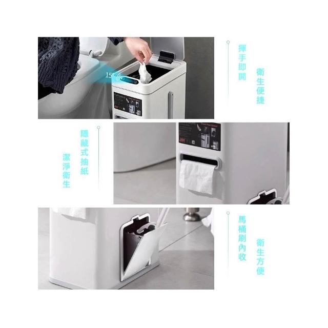 譽添家居智能感應三合一垃圾桶 抽紙式垃圾桶 衛生間專用桶 內置馬桶刷 隱藏式抽紙 手動/感應雙模式 7L 三色可選