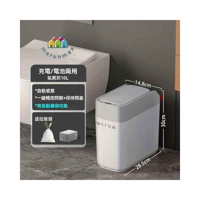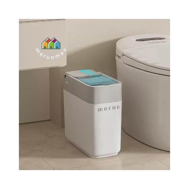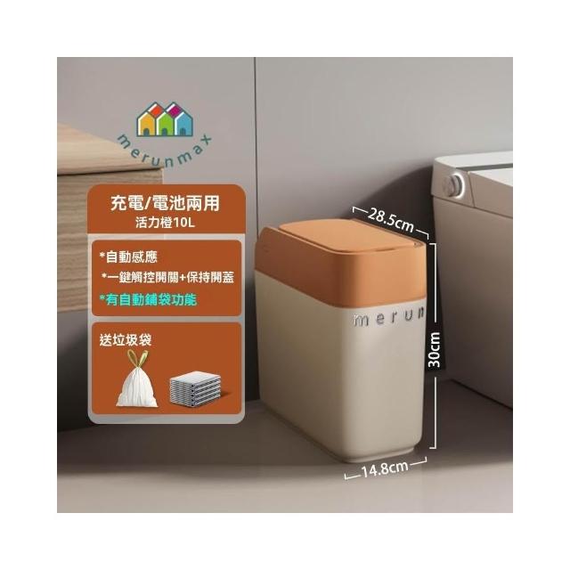 譽添家居滑蓋智能感應垃圾桶 折疊式感應桶 衛浴專用桶 10L窄縫設計 自動鋪袋功能 90°三折疊設計 灰/橙色