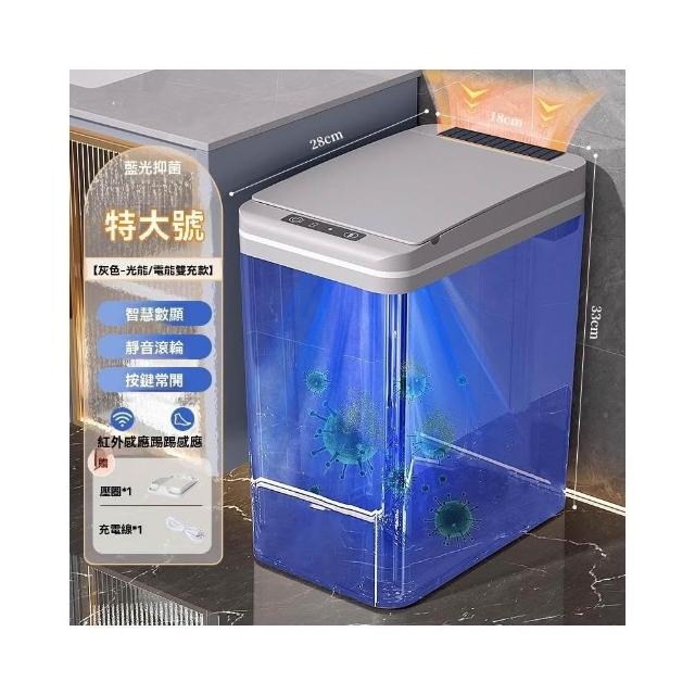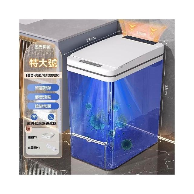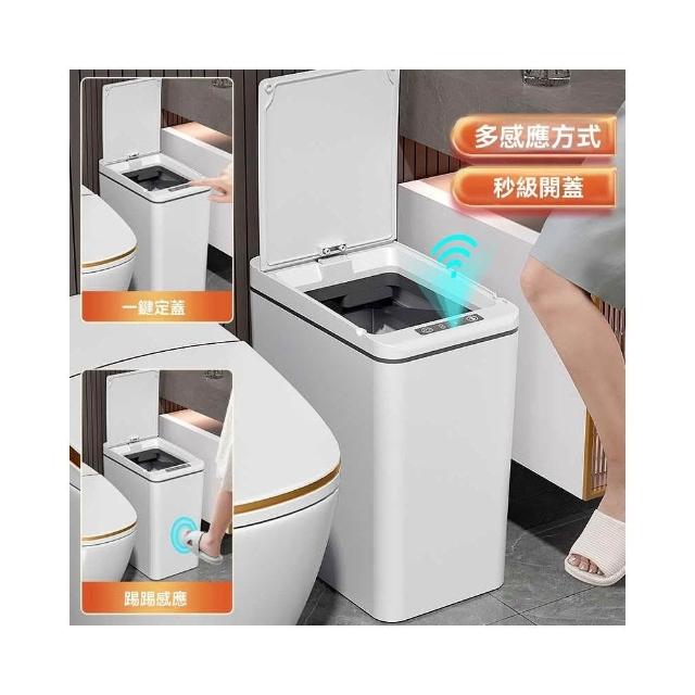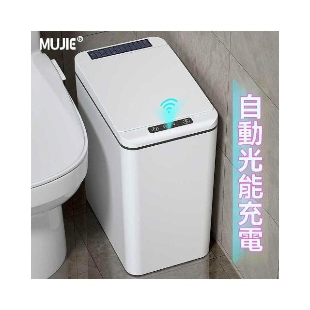 譽添家居MUJIE智能感應垃圾桶 三模式操作+60天续航 蓝光抑菌卫浴窄缝防潮款16L 白/灰色