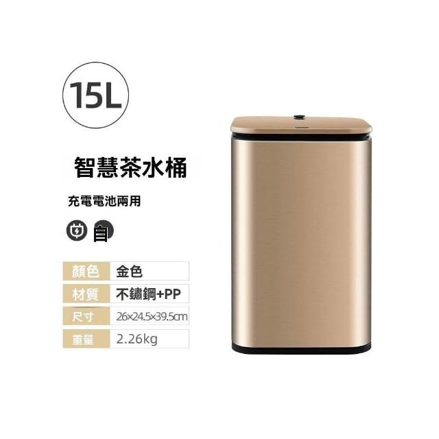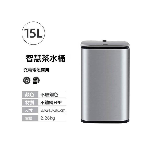 譽添家居智能茶水感應垃圾桶 不鏽鋼茶水桶 茶渣分離桶 虹吸式排水系統 手推/定蓋雙模式 防漏排水口結構 15L