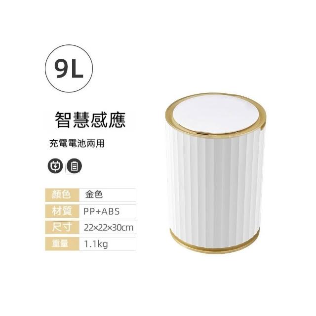 譽添家居智能感應垃圾桶 北歐風條紋垃圾桶 智能識別技術 15°斜角感應設計 超長續航 9L 白色/白金色