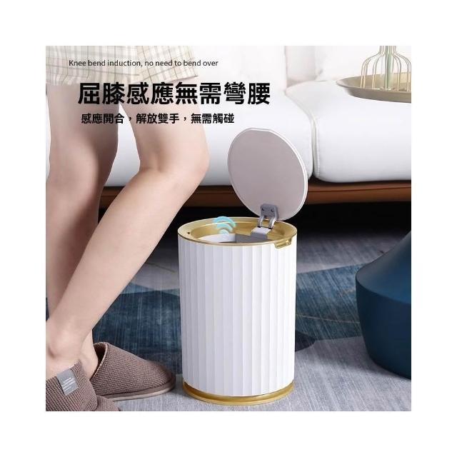 譽添家居智能感應垃圾桶 北歐風條紋垃圾桶 智能識別技術 15°斜角感應設計 超長續航 9L 白色/白金色