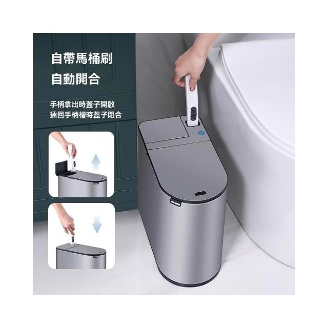 譽添家居智能感應馬桶刷垃圾桶 自動開合垃圾桶 防水耐鏽垃圾桶 帶可替換馬桶刷 手提式內桶設計 內置清潔液 7L