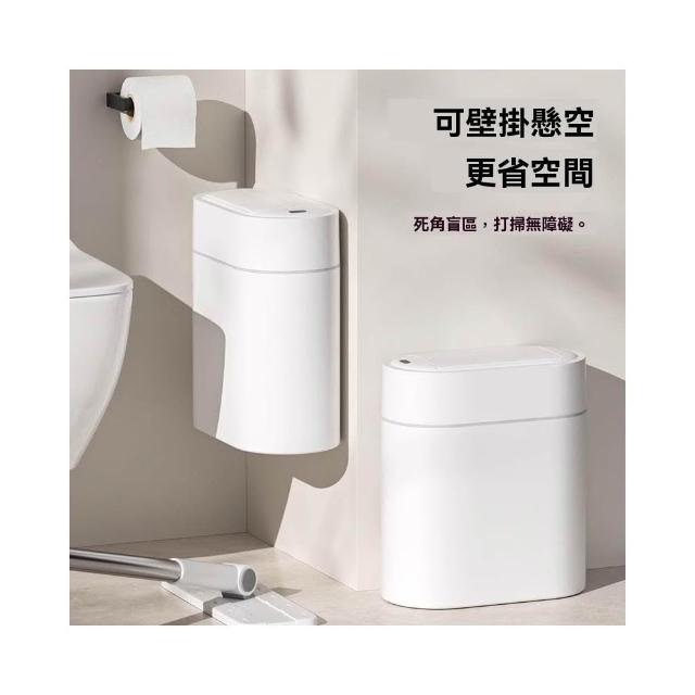 譽添家居智能感應垃圾桶 免觸碰垃圾桶 窄縫垃圾桶 雙向側滑開蓋 壁掛懸空設計 風力自動套袋 9L白色款