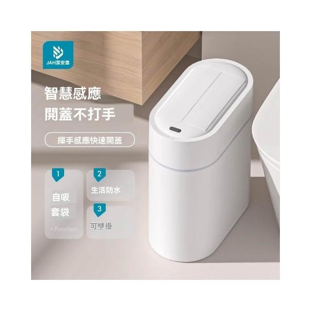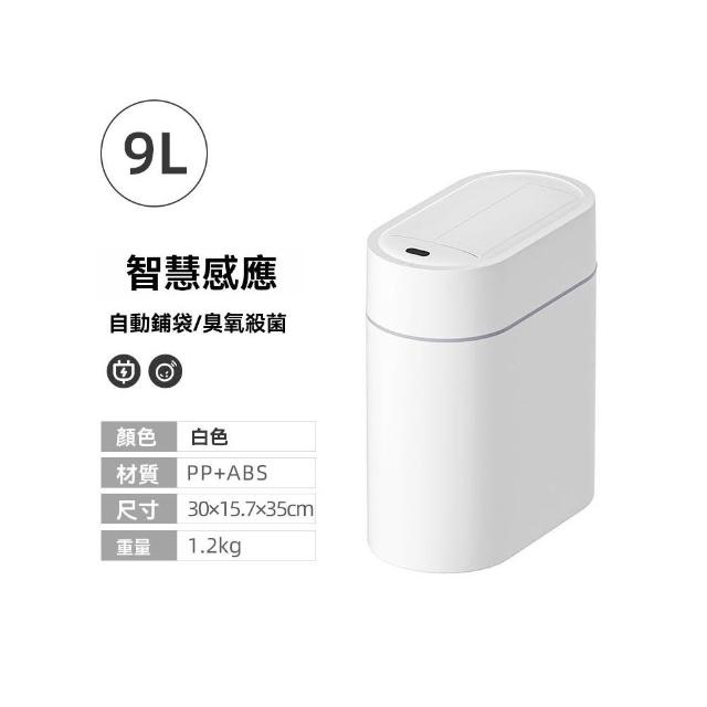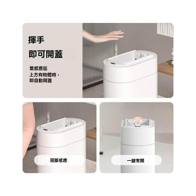 譽添家居智能感應垃圾桶 免觸碰垃圾桶 窄縫垃圾桶 雙向側滑開蓋 壁掛懸空設計 風力自動套袋 9L白色款