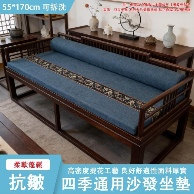 實木沙發坐墊 四季通用 亞麻長條 簡約現代 純色 紅木椅海綿 防滑 可拆洗
