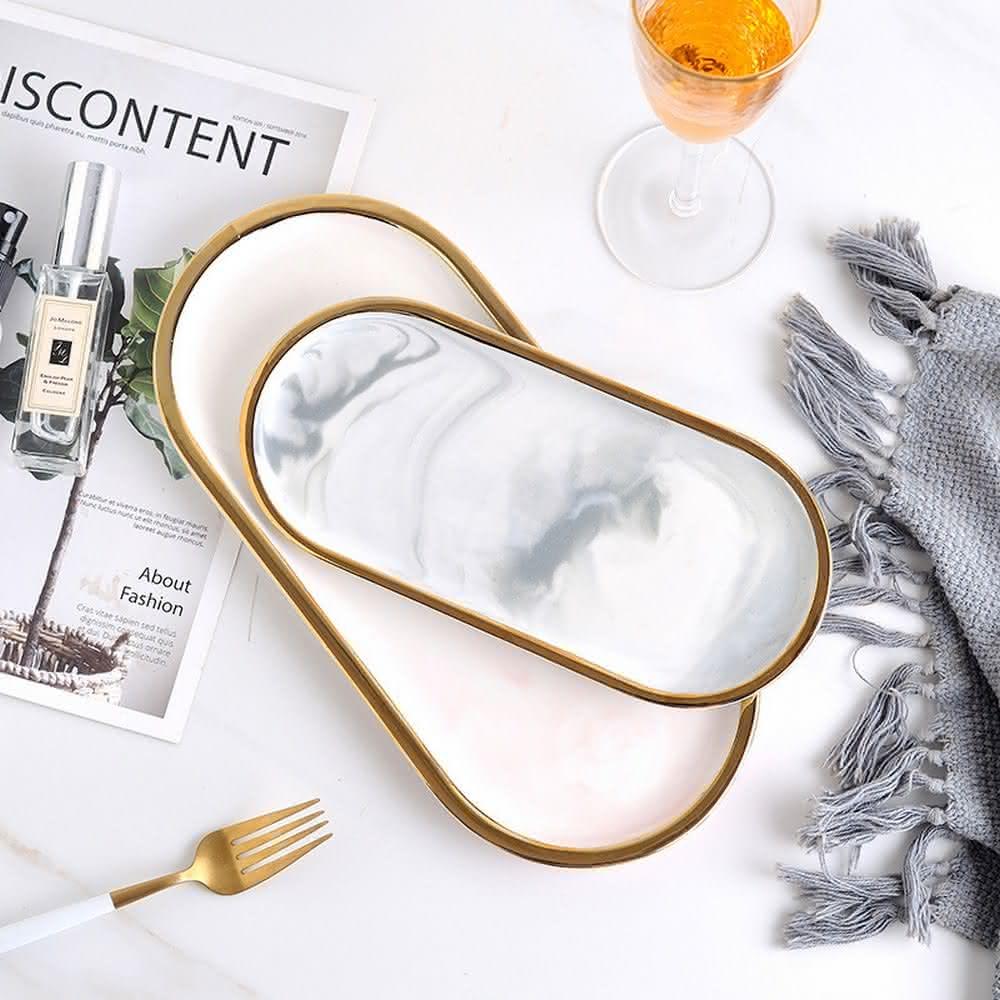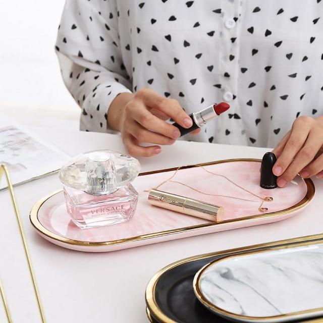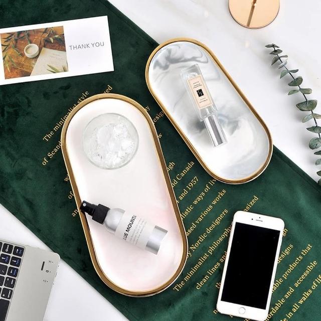 有飾life大理石紋陶瓷收納盤首飾收納盤 收納托盤 香薰蠟燭工具收納盤 首飾盤小托盤 首飾置物托盤