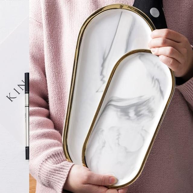 有飾life大理石紋陶瓷收納盤首飾收納盤 收納托盤 香薰蠟燭工具收納盤 首飾盤小托盤 首飾置物托盤