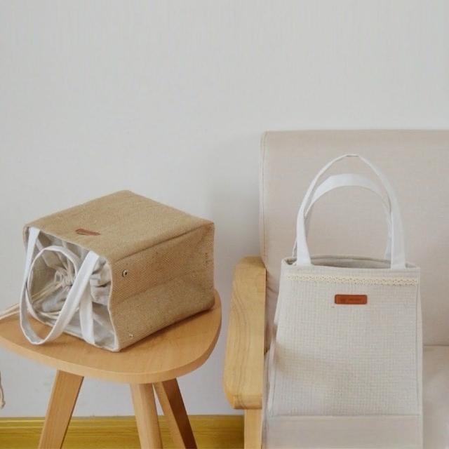 有飾life日系棉麻加厚鋁箔保溫袋 便當袋 保溫包 保冷袋 收納袋 便當包 野餐包 棉麻手提袋 保冷便當袋