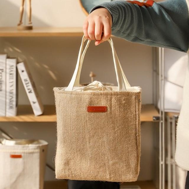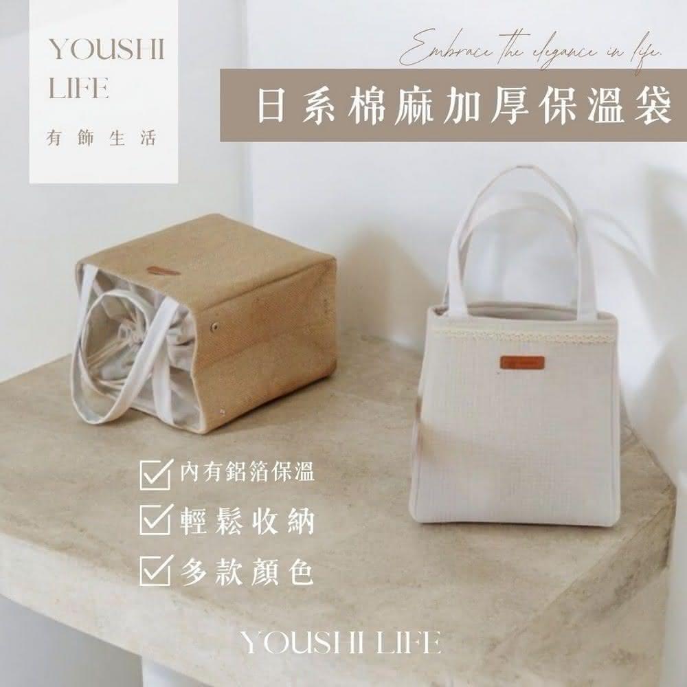 有飾life日系棉麻加厚鋁箔保溫袋 便當袋 保溫包 保冷袋 收納袋 便當包 野餐包 棉麻手提袋 保冷便當袋