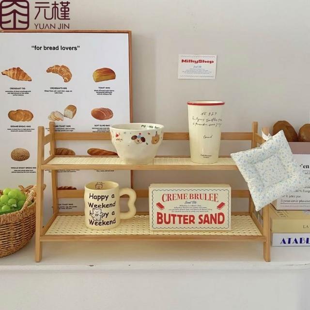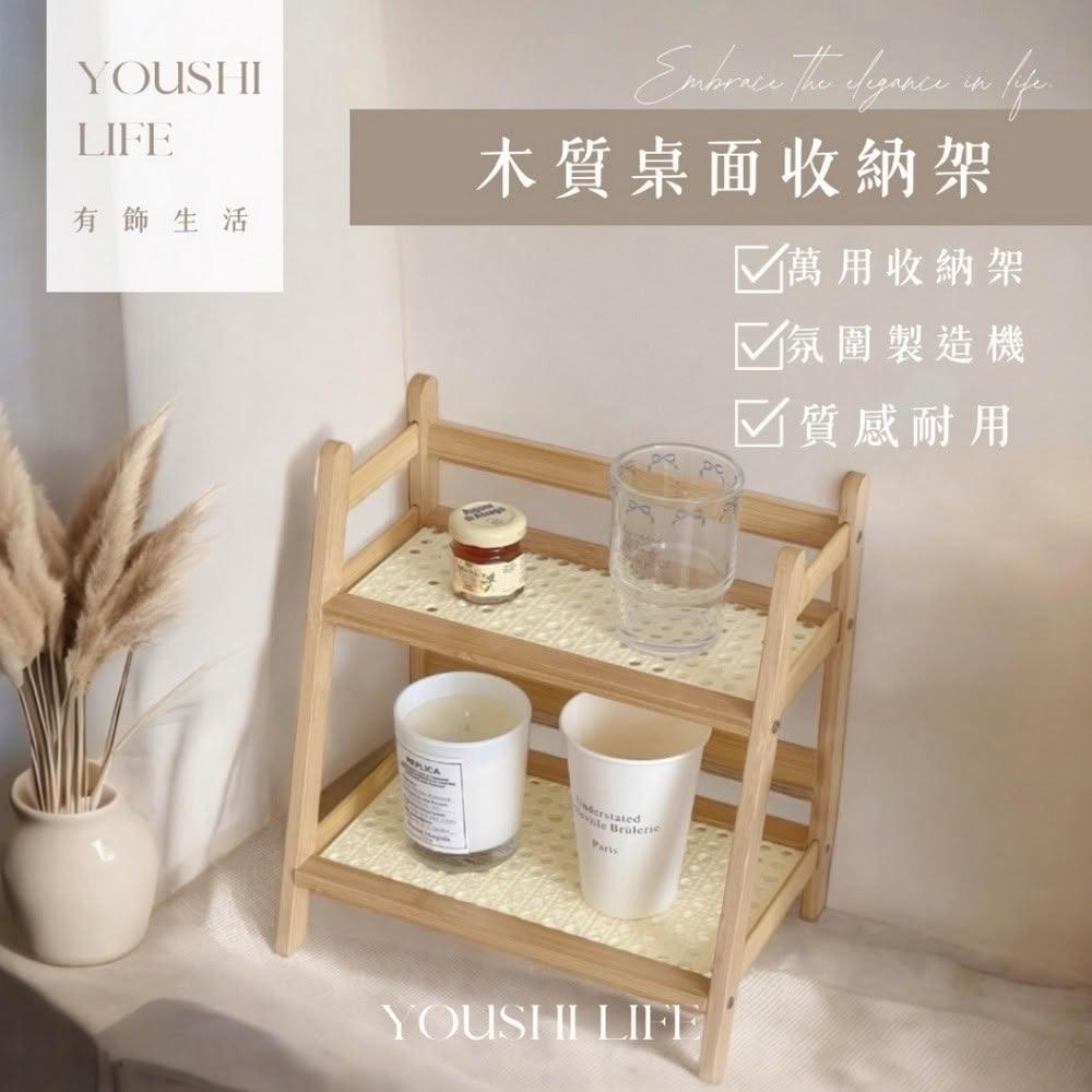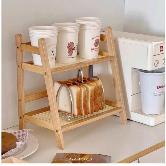 有飾life廚房桌上收納架 桌上收納置物架 藤編雙層置物架 收納架 梯形置物架