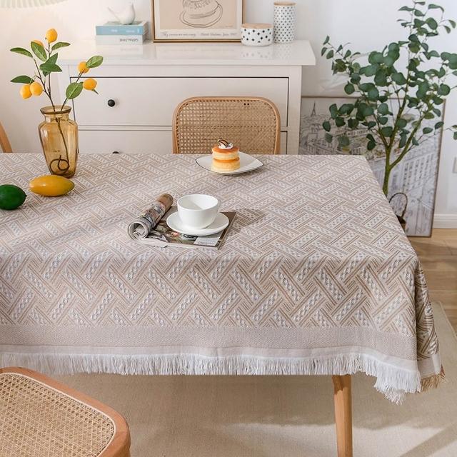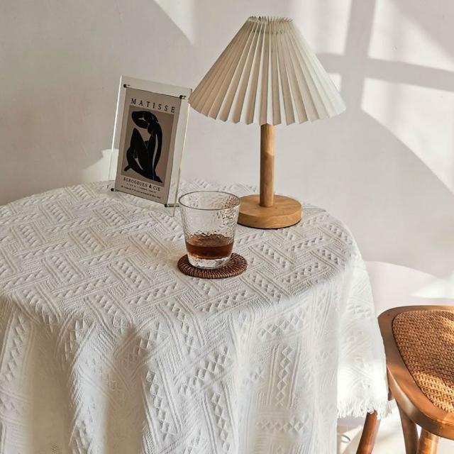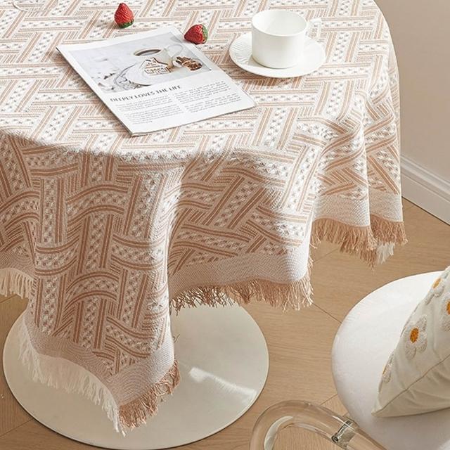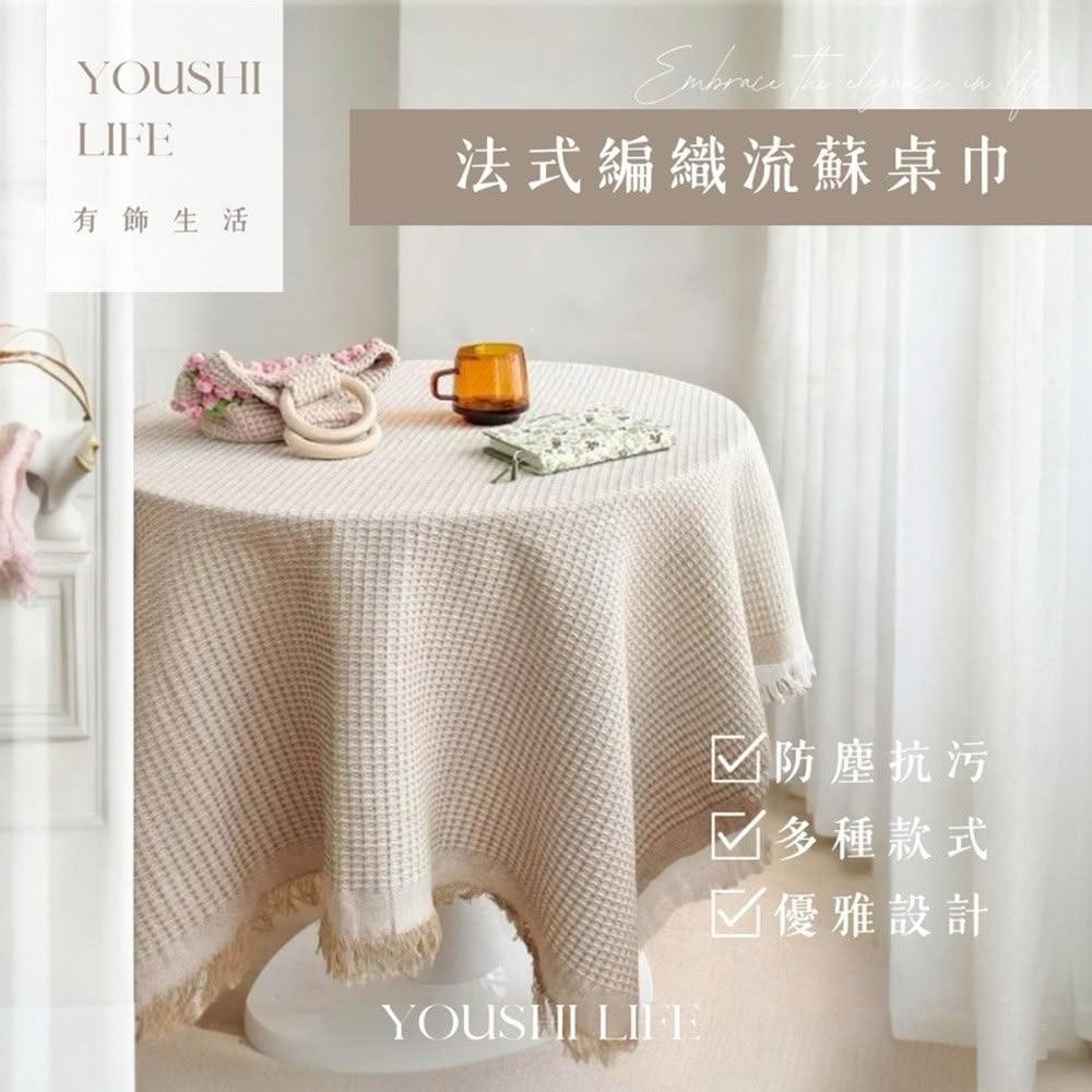 有飾life大尺寸編織流蘇桌布 編織桌布 餐桌布 桌巾餐桌墊 背景布 野餐巾