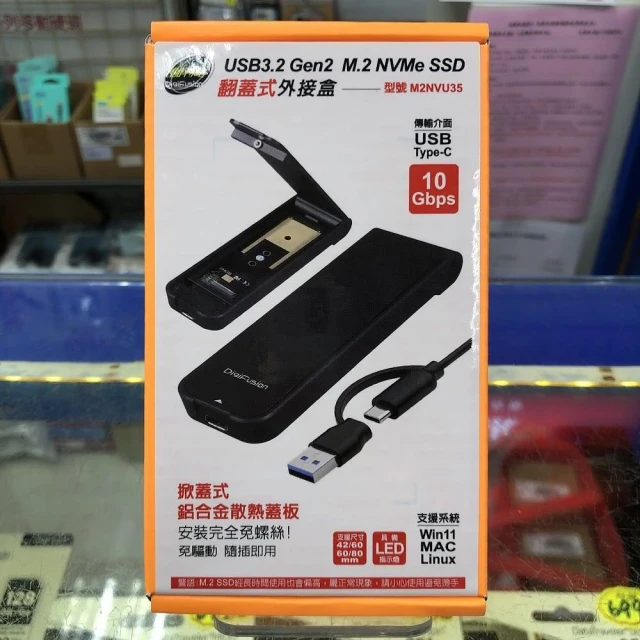 伽利略DigiFuSion USB3.2 Gen2 M.2 NVMe SSD 翻蓋式外接盒 附C+A傳輸線 M2NVU35