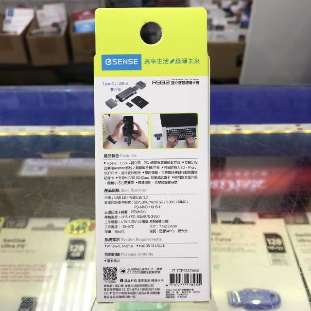 ESENSE 逸盛R332 雙介面雙卡讀卡機 雙槽 Type-C USB-A SD/Micro SD TF 記憶卡 讀卡機