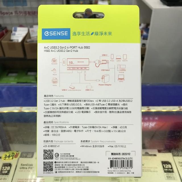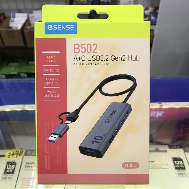 ESENSE 逸盛B502 A+C USB3.2 Gen2 Hub 高速傳輸 Type-C USB-C 4埠 擴充 01-EHB502TA