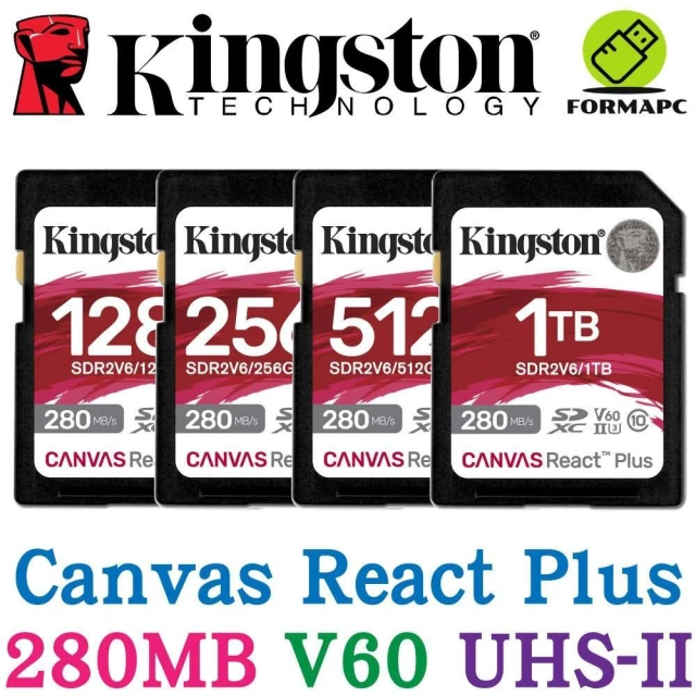 Kingston 金士頓Canvas React Plus SDXC SD UHS-II V60 U3 4K 280MB 記憶卡 SDR2V6