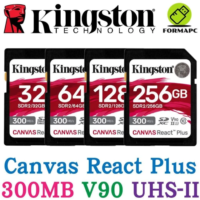 Kingston 金士頓Canvas React Plus SDXC SD UHS-II V90 U3 8K 300MB 相機 記憶卡 SDR2