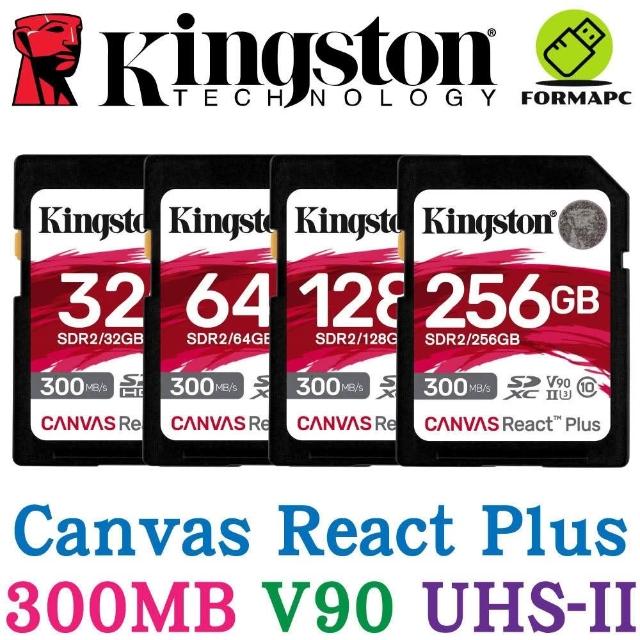 Kingston 金士頓Canvas React Plus SDXC SD UHS-II V90 U3 8K 300MB 相機 記憶卡 SDR2