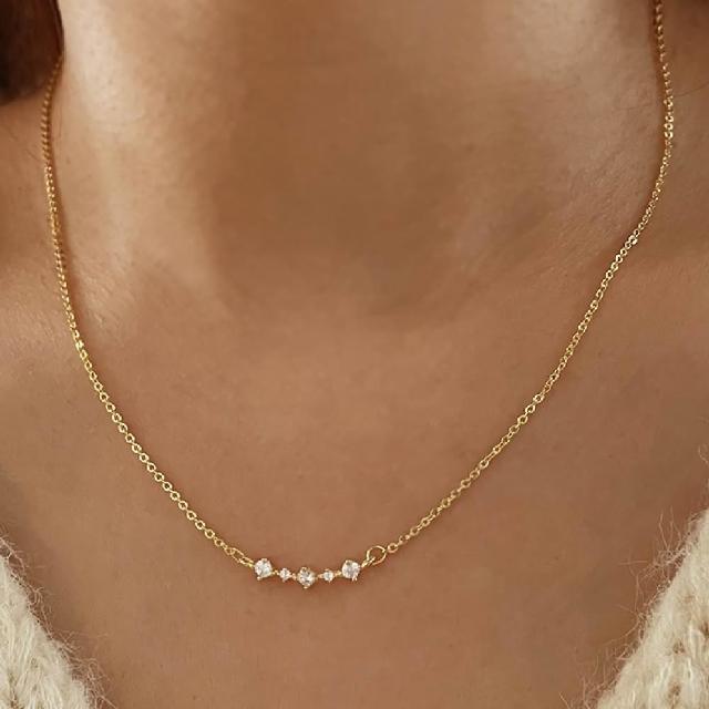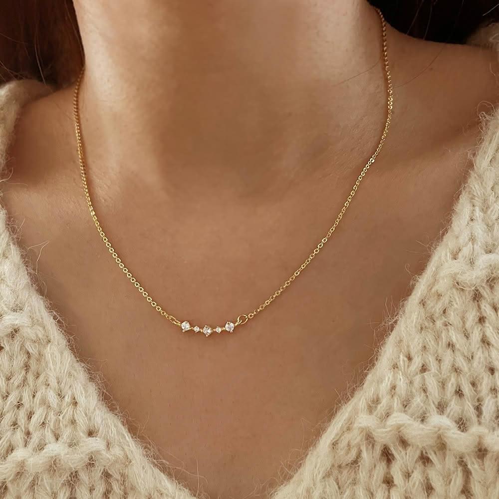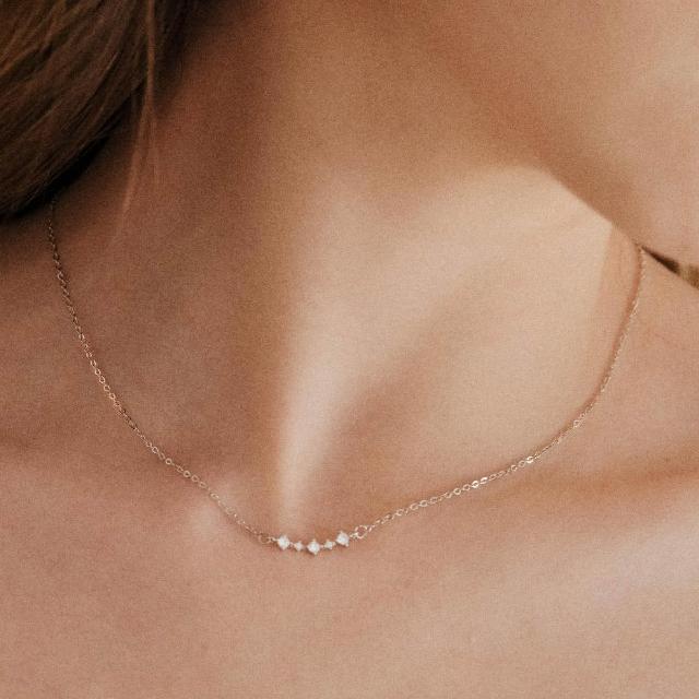 - 925純銀項鍊鑲崁5顆鋯石
