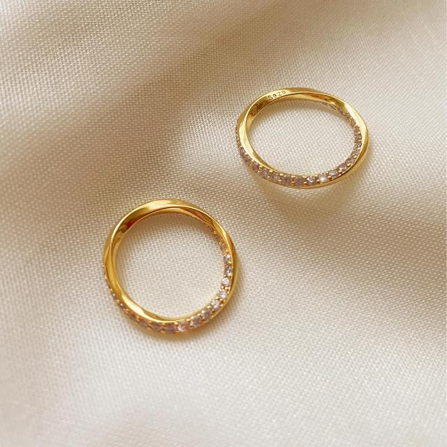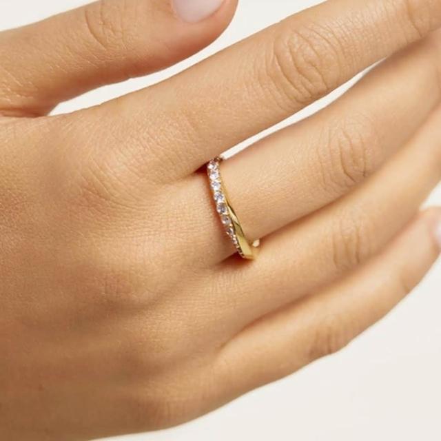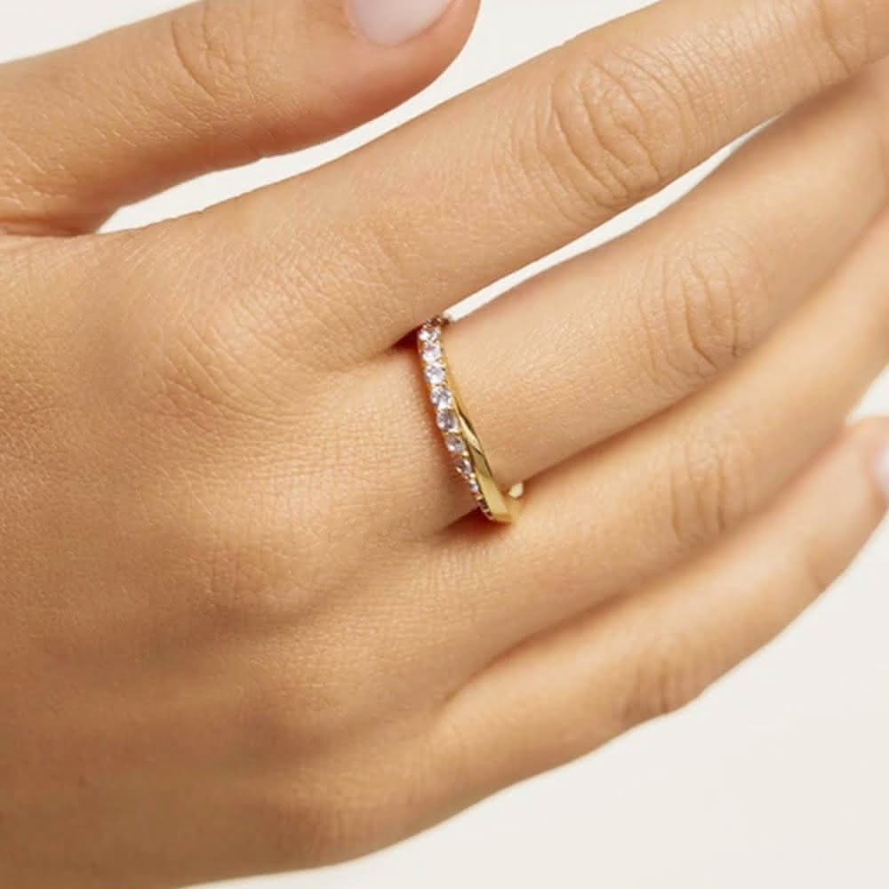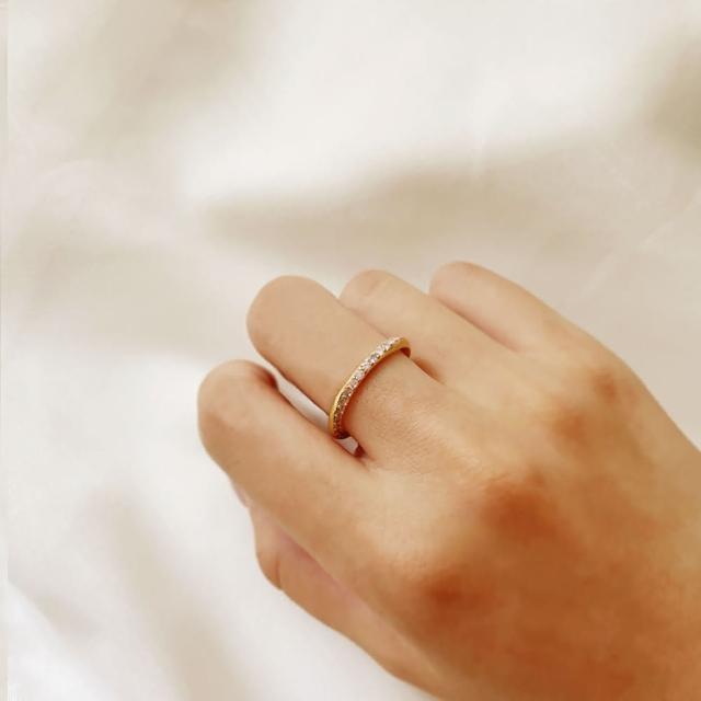 CReAMLola黃銅鍍18K金色彎曲碎鑽戒指亮鑽戒指(新年 過年 送禮 禮物)