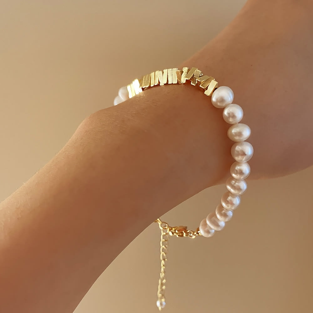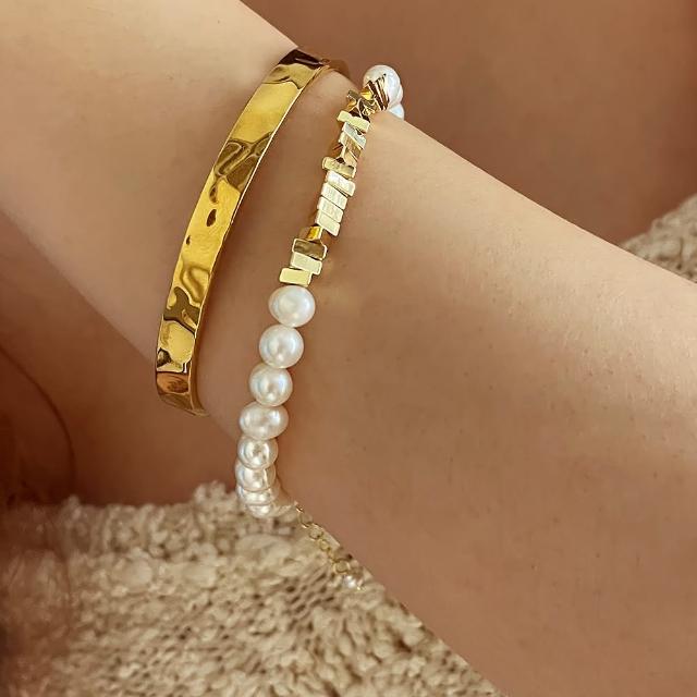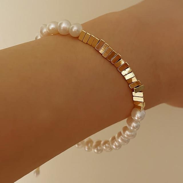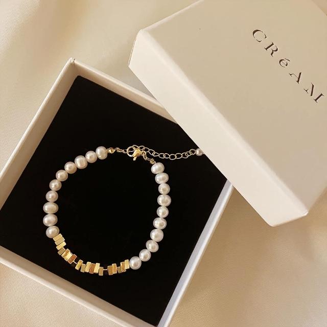 CReAMNadia天然淡水珍珠碎金屬珍珠手鍊 碎金珍珠手環(生日 禮物 送禮 禮盒)