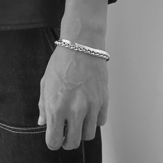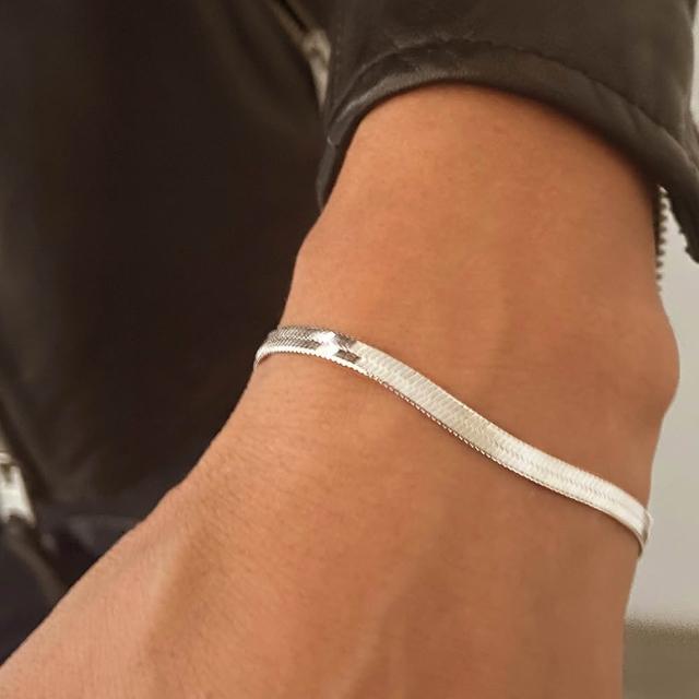 CReAMHuba不鏽鋼蛇鍊扁鍊中性男性手環手鍊(生日 禮物 送禮 禮盒)